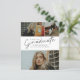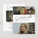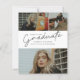 Este convite de formatura com foto moderno e elegante apresenta um graduado em script e nome, escola e colagem de três fotos personalizáveis na frente. O verso oferece parabéns e detalhes do evento com uma foto adicional. Uma ótima maneira de mostrar seu graduado.