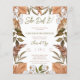 Design de convite de festa de formatura "Ela Conseguiu" com grama seca e algodão em aquarela com tons brancos e suaves de terracota, verde e mocha.