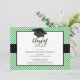 Comece seu evento de festa de formatura com nosso boné negro de formando moderno com um convite de festa de formatura de 2021. Design apresenta um conjunto de bonés de formatura preto clássico em um plano de fundo de padrão de faixa verde e branca com uma banda de destaque preto de tendência. Convite perfeito para graduação em 2021 para segundo grau ou formandos. Apenas preencha suas informações e você está pronto para ir. Visite nosso compro para uma grande variedade de convites para graduação e na moda em uma grande variedade de cores escolares!