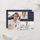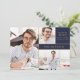 Este convite de festa de formatura moderno pode ser personalizado com suas 3 fotos especiais de graduado e detalhes da celebração em tipografia dourada sobre um fundo azul marinho. Criado por Thisisnotme©