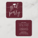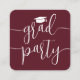 Esses convites de formatura são pequenos em tamanho, mas grandes em simplicidade elegante. Anunciem a conquista do graduado e convidem familiares e amigos para celebrar com elegantes cartões de festa de formatura miniatura com envelope na cor vinho e branco. O tamanho pequeno, semelhante ao de um cartão de visita, facilita a inclusão com os anúncios de formatura ou a distribuição para familiares e amigos (eles não vêm com envelopes). Vendidos em pacotes a um preço acessível, esses convites oferecem uma opção sofisticada para manter-se dentro do orçamento. O texto neste modelo é simples de personalizar, e as cores podem ser personalizadas usando a ferramenta de design da Zazzle. O design moderno em vermelho burgundy escuro e branco apresenta caligrafia em estilo manuscrito com um chapéu de formatura e tipografia clássica elegante. Este cartão de convite de formatura é uma maneira única de anunciar a celebração de um dia especial. Parabéns ao graduado!