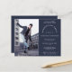 Uma alternativa de orçamento com custo-benefício em um tamanho menor de 4,5 x 5,6” semi-brilho 110lbs de peso, que é de espessura semelhante a um cartão postal (no entanto, não é adequado para uso como cartão postal). POR FAVOR, OBSERVE que há UM convite por folha. Convite de festa de formatura da Marinha para foto com orçamento. Um design totalmente personalizável, basta substituir a foto da amostra pela sua e personalizar o texto para seus detalhes. Você também pode alterar a cor de fundo azul marinho em ambos os lados e a cor e o estilo do texto, se desejar, através da opção Personalizar Mais.