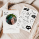 Cartão de convite à festa de formatura Funky com ilustração desenhada à mão da graduação e ícones relacionados à escola.