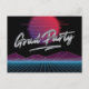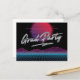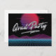 Este convite de festa de formatura temático dos anos 80 apresenta gráficos retrô e tipografia cromada vintage sobre um fundo preto. É o design perfeito para uma festa de formatura retrô.