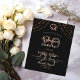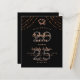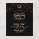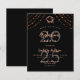 Um fundo preto decorado com estrelas douradas rosa e um boné. Personalize e adicione um nome, ano e detalhes da festa. O texto Graduação e o nome são escritos com um script de estilo moderno, escrito à mão. 1 folha = 1 convite impresso de borda a borda.
