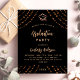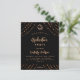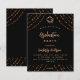 Um fundo preto decorado com estrelas douradas rosa e um boné. Personalize e adicione um nome, detalhes da festa e ano. O texto Graduação e o nome são escritos com um script de estilo moderno, escrito à mão. 1 folha = 1 convite impresso de borda a borda.
