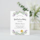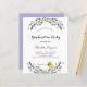 Um fundo branco decorado com flores lavandas e verde de eucalipto. Personalize e um nome e detalhes. 1 folha = 1 convite