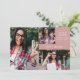 Este convite de festa de graduação moderno pode ser personalizado com suas 3 fotos especiais de graduado e detalhes da celebração em um fundo rosa poeirento. Projetado por Thisisnotme©