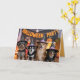 Quatro cachorros pequenos estão dando uma festa de Halloween.