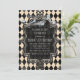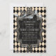 Convite para a festa de Halloween com diamantes preto e creme.