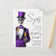 Levante seu copo para uma elegância assustadora com este convite de festa de Halloween com esqueleto roxo! Com um esqueleto elegante num smoking roxo e cartola segurando champanhe, este design combina charme gótico com glamour de festa de cocktails. Perfeito para soirées de Halloween sofisticadas, festas à fantasia ou encontros sombrios e elegantes. Personalize o texto com os detalhes do seu evento e organize uma noite de sofisticação e diversão assustadoras.