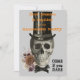Aqui está um convite de festas divertido de Halloween! A frente apresenta um crânio de cinza vestindo uma gravata de arco e um chapéu de cima formal. Do lado do crânio está um buquê de rosa. O texto laranja na parte superior, assim como o texto preto na parte inferior direita, podem ser facilmente personalizados por você. As imagens e o texto são colocados sobre um fundo de cinza leve. A parte de trás do convite tem a mesma cinza, mais crânios e o seu texto personalizado a preto.