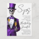 Levante seu copo para uma elegância assustadora com este Convite de Festa de Halloween Esqueleto no Roxo! Com um esqueleto elegante num smoking roxo e cartola segurando champanhe, este design mistura charme gótico com glamour de festa de cocktails. Perfeito para soirées de Halloween sofisticadas, festas à fantasia ou encontros assustadoramente elegantes. Personalize o texto com os detalhes do seu evento e organize uma noite de sofisticação sombria e diversão.