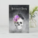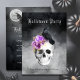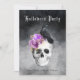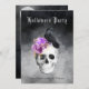 Adicione um toque personalizado exclusivo ao seu convite do Festa de Halloween. Este convite de Halloween apresenta um crânio branco assustador rodeado por névoa de cinza. O crânio é acentuado com rosas roxas lindas e um corvo preto no topo do crânio. Perfeito para o seu Festa de Halloween ou eventos temáticos góticos. O verso do convite tem todos os detalhes da parte que você pode personalizar facilmente. Ele apresenta uma cena noturna de lua de cheio e um taco voador assustador.