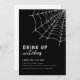 A temporada assustadora chegou. O convite apresenta um design elegante, com fundo preto e teia de aranha no canto. No centro, os detalhes da festa são lindamente escritos em um texto branco que exala um ar de diversão assustadora. Dê as boas-vindas aos convidados para sua próxima festa de coquetel, jantar ou festa de Halloween com estilo. A cor do fundo e o texto são editáveis.