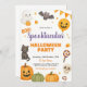 Jogue um evento maravilhosamente divertido com este convite do festival de Halloween Spooktacular! Apresentando abóboras brilhantes, fantasmas assustadores, morcegos e cores festivas do Halloween, este convite é perfeito para festas de outubro, comemorações de truques ou trajes ou trajes. Totalmente personalizável com os detalhes do evento — nome, data, hora e local. Um convite criativo e editável que dá o tom assustador perfeito para sua celebração de Halloween e faz seus convidados animados para se juntarem à diversão!
