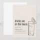 Convide amigos e familiares para celebrar a sua nova casa com um convite encantador para uma festa de inauguração com o tema divertido "As Bebidas São Por Conta da Casa". O fundo é um bege quente, criando uma atmosfera acolhedora e aconchegante. No lado esquerdo, os detalhes da festa são apresentados em uma fonte preta simples, garantindo clareza e elegância. À direita, uma ilustração minimalista de um coquetel alto adiciona um toque de diversão e personalidade ao design. Este convite combina perfeitamente um tema leve com uma estética elegante, prometendo uma celebração de inauguração deliciosa e memorável.