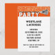 Convites de festa temáticos de lacrosse criativos para personalizar facilmente para jogador de lacrosse, treinador ou celebração de festa da equipe laranja.