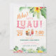 Convide seus amigos para uma festa temática de Luau havaiano com estes belos convites de festa com hibiscos, apresentando texto em aquarela, flores de hibisco e folhas de palmeira, e drinques tropicais. Personalize o texto para se adequar a qualquer tipo de festa.