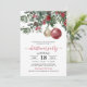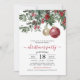Eleve sua festa de Natal com um ar de sofisticação e charme atemporal. Nossos convites de festa elegantes com tema de inverno apresentam um fundo branco limpo adornado com flores e folhagens rústicas em aquarela, complementando perfeitamente as bolas vermelhas e douradas festivas. Com um modelo de festa clássico e conveniente, esses convites podem ser facilmente personalizados para combinar com seu evento de Natal único.