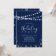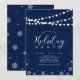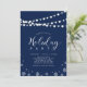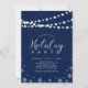 Celebre a temporada com este convite de festa de natal moderno. Este design apresenta luzes de corda elegantes, flocos de neve e tipografia "Festa de Natal" em azul marinho e branco. Você pode personalizar o texto e as cores do fundo. Um ótimo design para um jantar de Natal moderno e sofisticado, ou festa de natal corporativa.