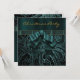 Convite de festa de Natal em damasco verde jade dourado.