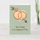 Convite de festa de noivado com coração, seta e anéis em cor bege e enferrujado em fundo verde-claro. Obrigados à Hungryjpeg para alguns dos elementos do design.