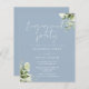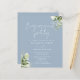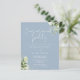 Este elegante convite para festas de noivado floral azul-botânica empoeirada pode ser personalizado com suas informações em tipografia quic com suas iniciais de monograma no verso. Projetado por Thisnotme©