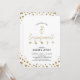 Este convite de festa de noivado de casamento moderno apresenta gráficos de corações de ouro e jarra de mason fofos com uma textura dourada.