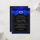 Convite de festa de noivado azul real. Laço azul com coração de joia e design floral preto. POR FAVOR, OBSERVE que todas as imagens planas! Elas NÃO têm laços reais, diamantes ou joias!!