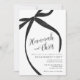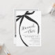 Celebre seu noivado com um estilo atemporal com este elegante convite de festa de noivado com laço preto. Com um detalhe de laço preto único e um layout limpo e minimalista, este design é perfeito para uma celebração formal de gravata preta.