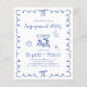 Defina o tom para uma celebração alegre com este convite de festa de noivado encantador, apresentando uma moldura ondulada em azul francês, laços desenhados à mão e letras em script divertido. Os copos de vinho para brindar alegres adicionam um toque divertido e festivo, criando a combinação perfeita de estilo romântico e caprichoso. OBSERVAÇÃO: Este papel econômico é semelhante em peso ao papel fotográfico - uma versão de papel-cartão tradicional 5x7 maior e mais grossa também está disponível (envie-nos uma mensagem para o link).