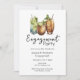 Convites de cocktails de noivado. Fácil de personalizar. Todo o texto é ajustável e fácil de alterar para as necessidades da sua festa. Gráficos simples de bebida frutada em aquarela. Convites para ele ou ela. Design de noivado de bar ou churrasco no quintal. Qualquer idade, basta mudar o texto.