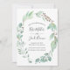 Um belo convite para noivados que inclui folhagem verde-aquarela e tipografia moderna, escrita à mão. O verso apresenta um padrão floral simples. Estão disponíveis outros elementos de coordenação. Veja abaixo a coleção. © Mini Moi Impressões