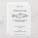 Um convite de festa de pesca simples e minimalista com uma ilustração de uma truta em arte linear. Você pode usá-lo para uma aposentadoria, um aniversário, uma festa ao ar livre, um churrasco de peixe, etc.