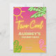 Design de convite vibrante e animado que combina elementos tropicais com cores neon ousadas. É perfeito para eventos como festas de piscina, festas havaianas, celebrações de aniversário ou qualquer ocasião em que você queira injetar um sentido de diversão e animação