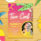 Design de convite vibrante e animado que combina elementos tropicais com cores neon ousadas. É perfeito para eventos como festas de piscina, festas havaianas, celebrações de aniversário ou qualquer ocasião em que você queira injetar um senso de diversão e emoção