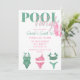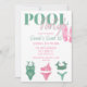 convites de festa de piscina cor-de-rosa e verde com vibe preppy retrô