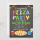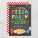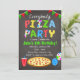 Convite de festa de pizza em quadro-negro