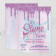 Este Convite de Festa de Slime Brilhante é perfeito para qualquer festa de slime com detalhes rosa, roxo e brilho!