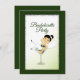 Uma noiva super bonita em vidro de champanhe... em papel verde de caçador. Isto é para a noiva de cabelo preto. Convito de casamento para Hunter Green na minha loja.