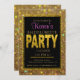 Glitter roxo e convite para festa de solteira de ouro. Este convite contém uma inscrição dourada com uma "FESTA" em negrito com uma borda de brilho. Nota: Esta é uma impressão de arte gráfica por Amelia Carrie e não contém nenhuma falha.