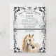 Organize um evento inesquecível do Kentucky Derby com este convite sofisticado, apresentando um fundo branco limpo emoldurado por intricado trabalho de filigrana preta. O design exibe um retrato impressionante de um cavalo em aquarela com uma crina dourada na parte inferior, combinando elegância artística com charme equestre clássico. Perfeito para festas em fazendas, reuniões sofisticadas no dia das corridas ou celebrações com tema vintage. O layout inclui tipografia serif elegante e espaço para todos os detalhes do seu evento, garantindo um anúncio profissional e memorável.