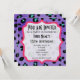 Um convite perfeito para um aniversário ou qualquer outra ocasião. Fundo de estampa de leopardo roxo em ambos os lados. A frente apresenta texto personalizável preto dentro de uma moldura de colchetes rosa.
