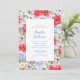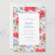 Este lindo convite apresenta flores de aquarela em tons azuis e vermelhos. É perfeito para qualquer evento, como aniversários, chá de noiva, jantares e muito mais.