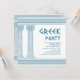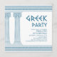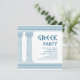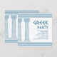 Convite de aniversário Greek Party com pilares de templo minimalistas e padrão de meandro grego em azul. Produto personalizável para uma celebração memorável. Perfeito para casamentos, noivados, festas de formatura, aniversários, save the dates, despedidas de solteira e festas de aniversário com tema Grécia Antiga ou Roma Antiga.