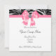 Convite de festa com laço rosa elegante e centro de diamante com tema de zebra rosa. Este convite chique de zebra rosa funciona muito bem para um convite de aniversário de zebra rosa, convite de casamento de zebra rosa, convite de chá de bebê de zebra rosa, convite de bat mitzvah de zebra rosa e qualquer outra ocasião especial. Adicione seus detalhes na frente e no verso simplesmente escolhendo o botão laranja "Personalize!" para começar a adicionar os detalhes do seu evento, estilo de fonte, tamanho e cor da fonte e texto. Por favor, note que todos os desenhos de convite que você encontrará na Zazzle são gráficos impressos em papel liso sem joias, laços, relevos, rebaixos ou peças ou partes adicionadas.