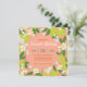 Defina o tom da sua celebração especial com este convite encantador, apresentando limões frescos e flores delicadas em tons de coral suave e verde. Os detalhes botânicos desenhados à mão criam uma moldura perfeita para os detalhes do seu evento personalizado, trazendo um toque de elegância fresca de jardim para a correspondência da sua festa.