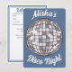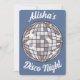 Convite personalizado para uma festa de aniversário disco. O convite mostra uma ilustração de rostos com uma bola de discoteca. Convite perfeito para aniversário, despedida de solteira ou noite das meninas.
