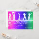 convite de festas colorido perfeito para adolescentes. Com cores neon gradiente e silhuetas brancas de dançarinos este convite vai se destacar. Personalize com as informações da sua parte, alterando a cor, o estilo do texto ou ainda adicionando mais texto no verso, como instruções para a sua parte. Excelente divertido.